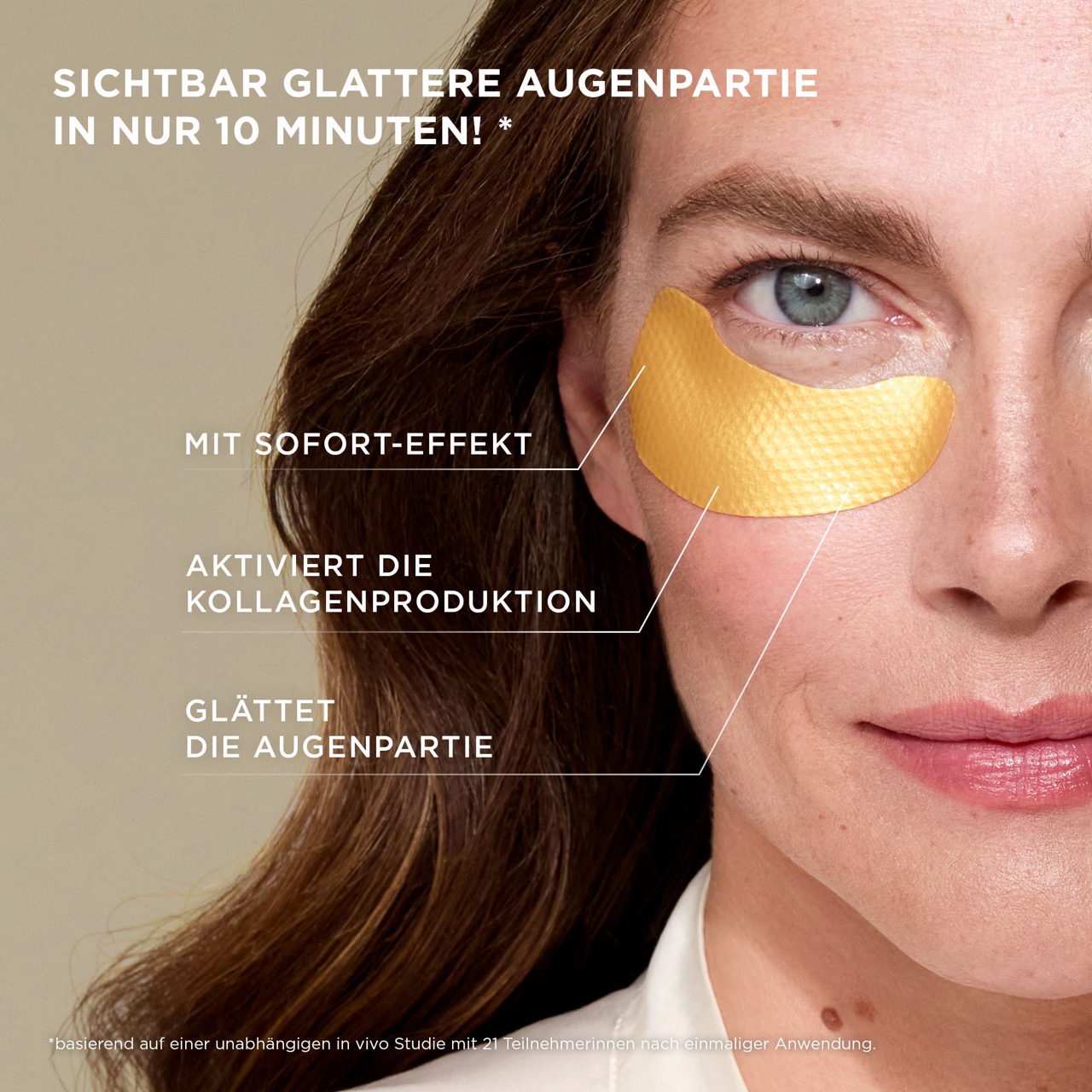 Schenke oder erlebe wohltuende Pflegerituale als bewusste Auszeit im Alltag. Unser goldener Bestseller ist zurück! Die Anti-Aging Augenpads Gold (5x2 Sachets) sind dein Sofort-Frischekick für müde Augen – egal, wie lang der Tag oder wie kurz die Nacht war. Ein Wirkstoffkomplex aus vier Hyaluronsäuren aktiviert die Kollagenproduktion, glättet die Augenpartie und sorgt für ein sichtbar erholtes Aussehen. Gerstenextrakt mildert feine Fältchen und schützt vor freien Radikalen. Bereits nach 10 Minuten wirkt die Augenpartie frischer, glatter und wacher* – für einen strahlenden Blick.