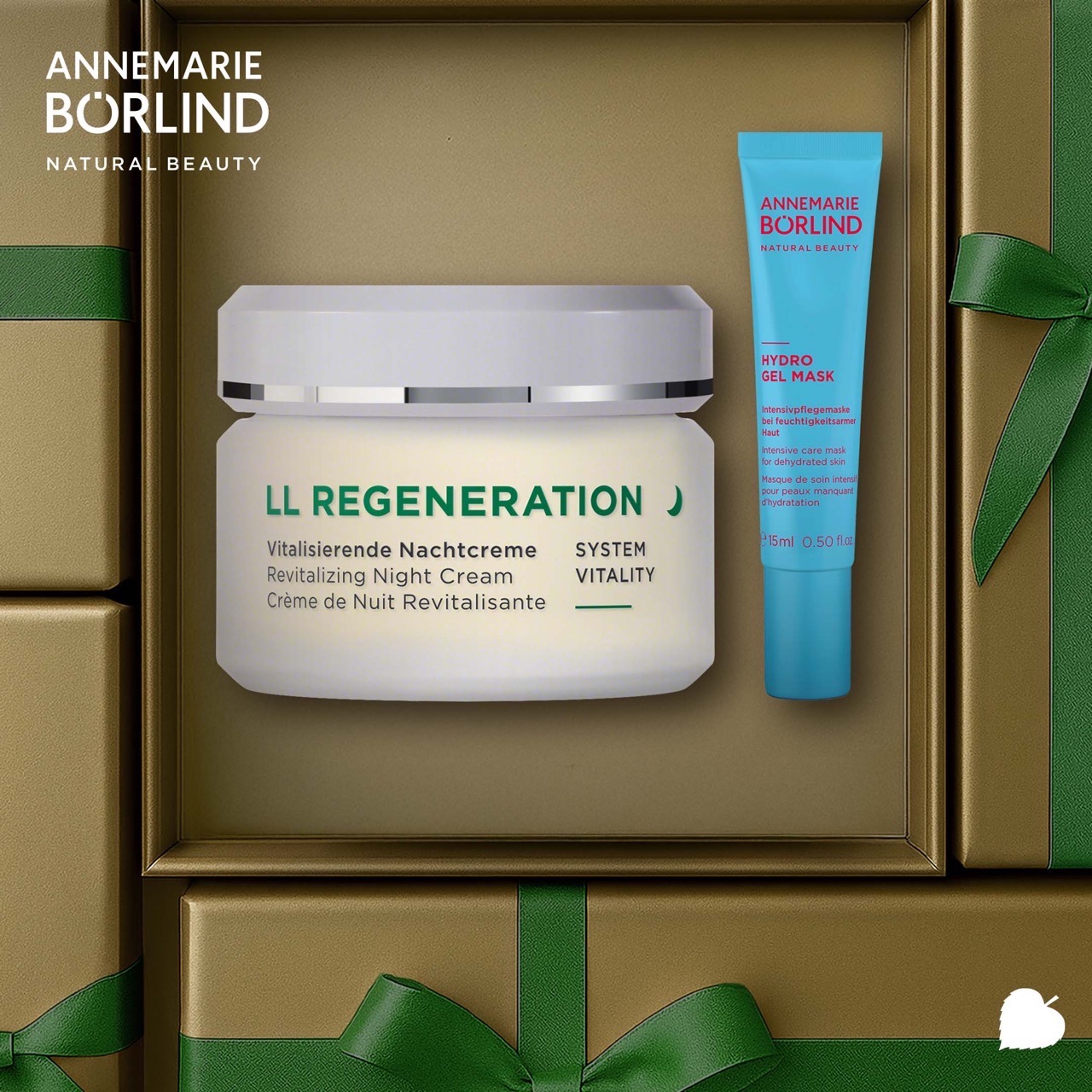 Erlebe oder verschenke kleine Pflegerituale als wohltuende Auszeit im Alltag. Unsere LL REGENERATION Serie mit patentiertem, pflanzlichem LL Biokomplex unterstützt die Zellerneuerung und sorgt für sichtbar straffere, vitalisierte Haut. Das Winter Recovery Night Set ist dein aufbauendes Pflegeritual für die Nacht: regenerierend, feuchtigkeitsspendend und spürbar erholsam – für ein frisches Hautbild am Morgen.