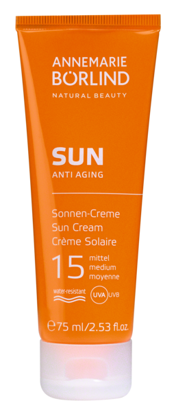 Anti-Aging Sonnen-Creme LSF 15 bietet mittleren Sonnenschutz und natürliche Pflege in einem. Ideal als Kälteschutz im Winter geeignet. Ein Anti-Aging Komplex mit Vitamin E schützt vor vorzeitiger Hautalterung.