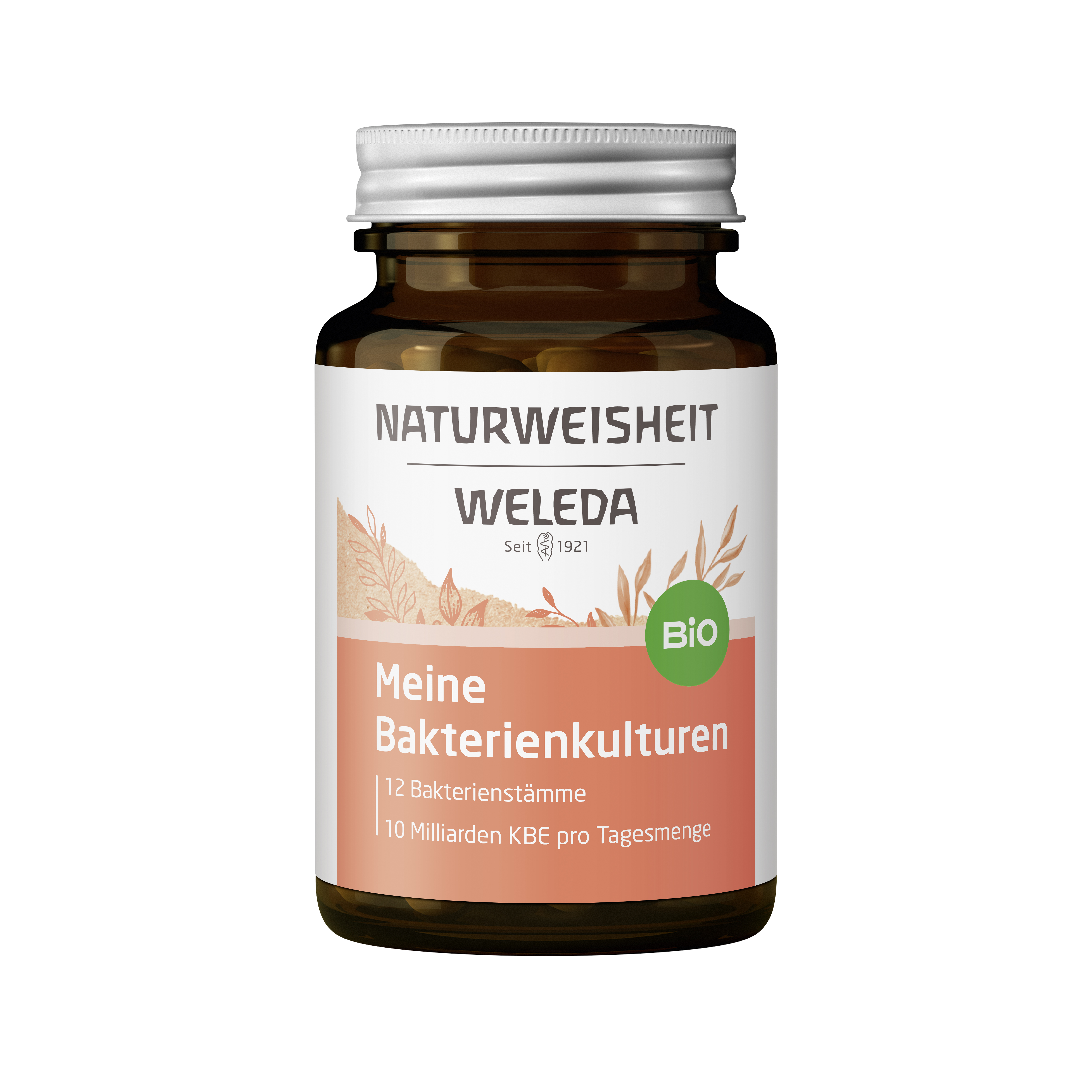 Meine Bakterienkulturen für Ihre Darmflora ist eine Spezialrezeptur aus 12 Stämmen lebender Lactobacillus- und Bifidobakterien mit 10 Milliarden koloniebildenden Einheiten pro Tagesmenge sowie Bio-Inulin aus Zichorienwurzel.