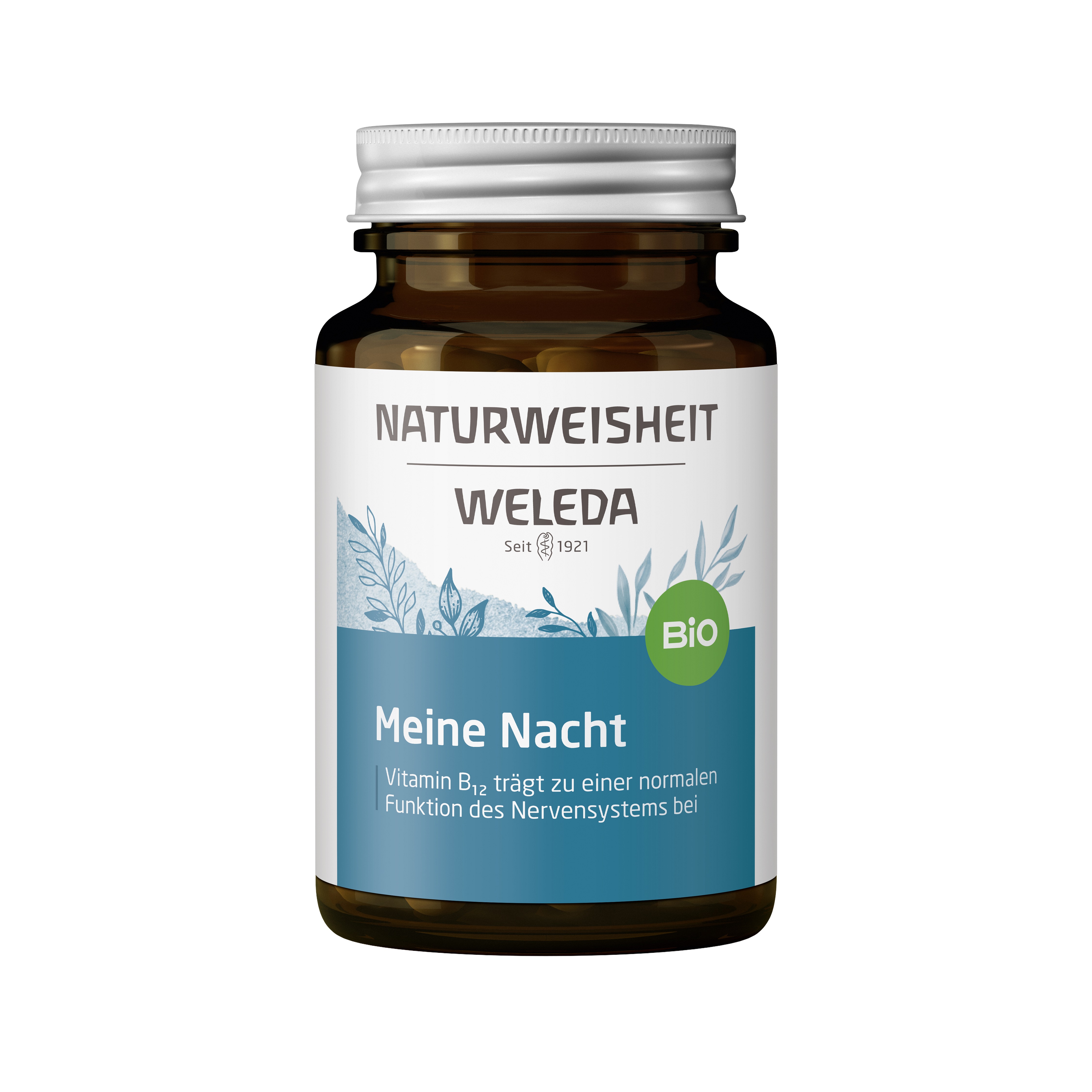 Meine Nacht ist ein Nahrungsergänzungsmittel mit Vitamin B12 aus natürlicher Quelle. Vitamin B12 trägt zur einer normalen Funktion des Nervensystems bei.