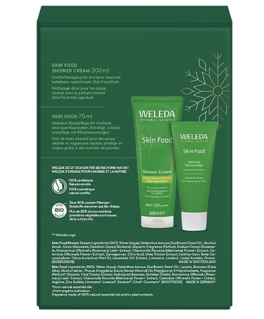 Unser Geschenkset überrascht alle Skin Food Fans mit der langersehnten neuen Skin Food Shower Cream. Zusammen mit der Original Skin Food bringt das die volle Power bei trockener Winter-Haut. Mit kostbaren Pflanzenauszügen wie Stiefmütterchenextrakt, Kamillenextrakt und Auszügen aus Calendulablüten.